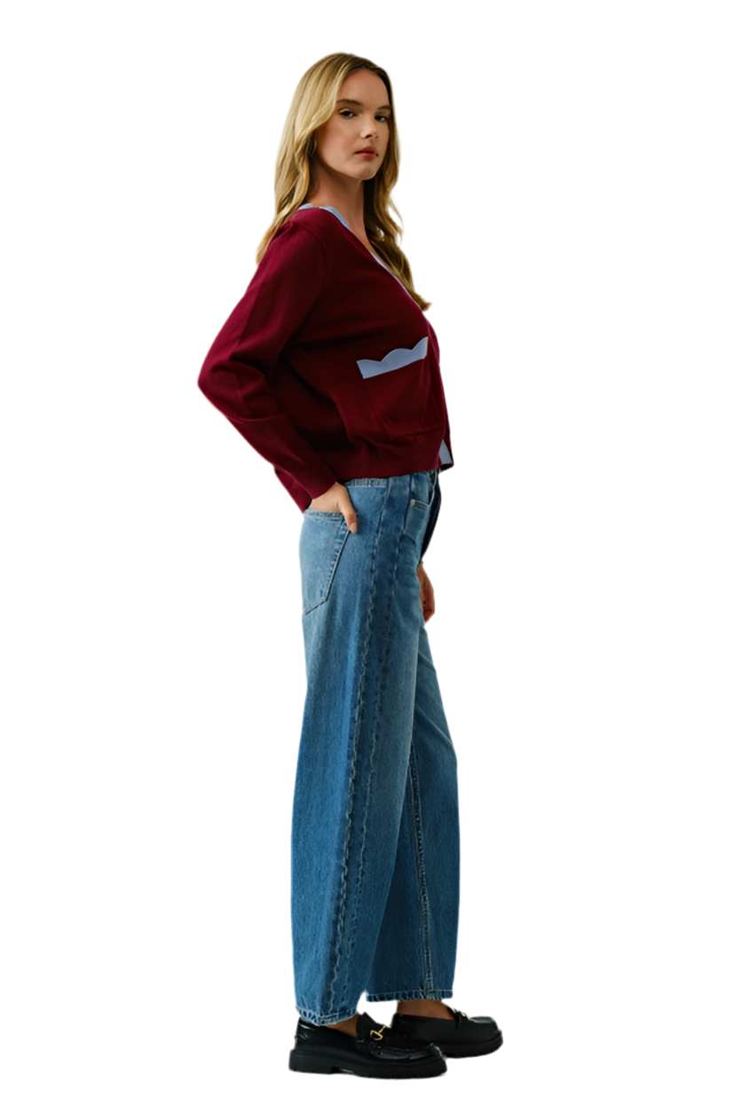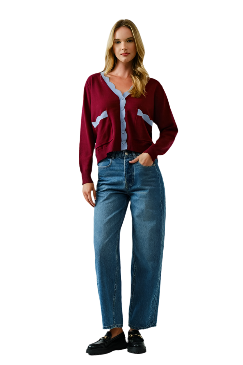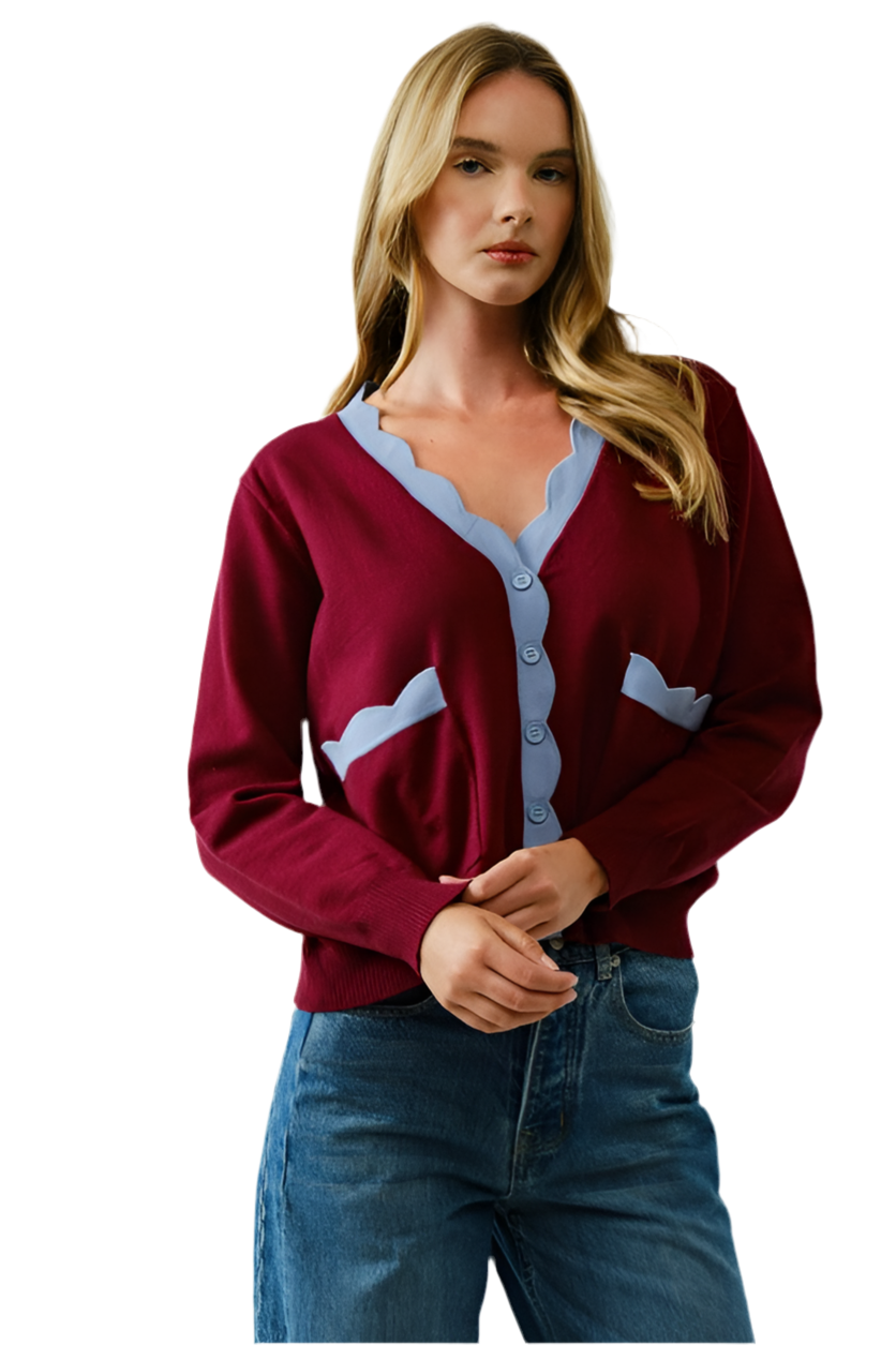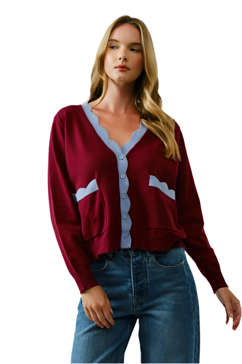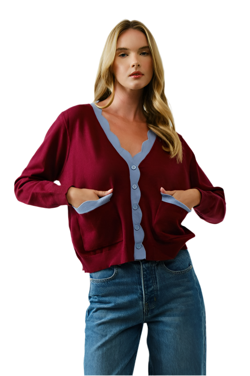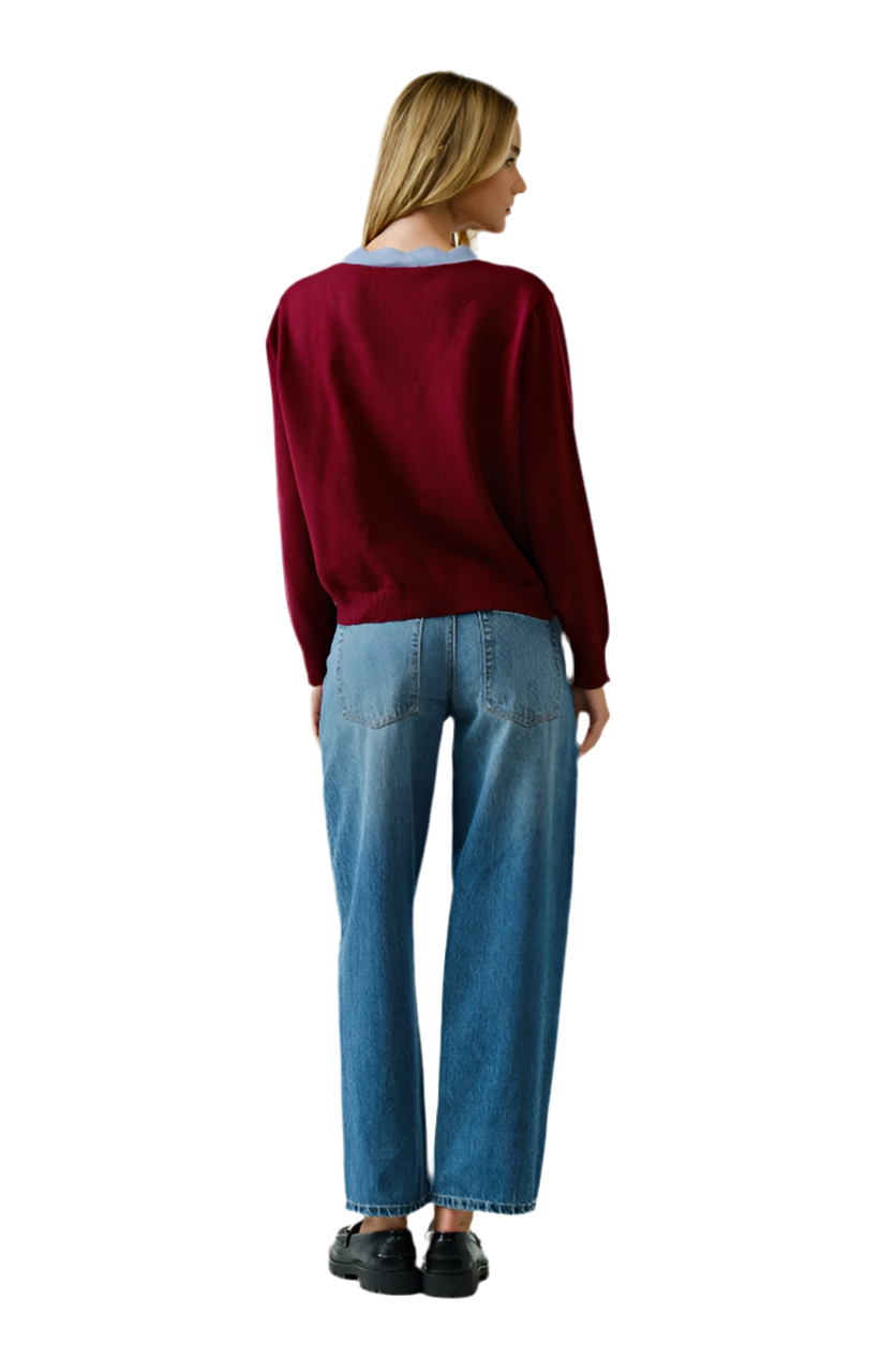 Suéter Vino Bordes Azules